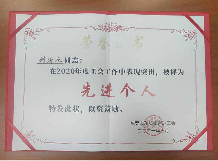 2021年3月26日上午,集团工会主席刘清花代表集团参加东城街道总工会2020年度工作总结大会。会上,东城街道工会授予集团工会“2020年度东城街道总工会工作先进集体”荣誉称号,并授予集团工会主席刘清花同志“2020年度工会工作先进个人”荣誉称号。
